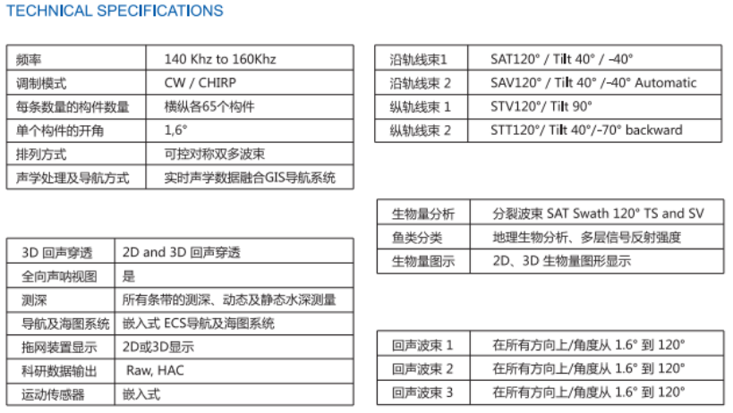 特征 ? 3D容量聲吶 ?雙向多波束回聲探測儀(DS-MBES) ?物種和習(xí)性分類 ?水下生物量3D視圖 |