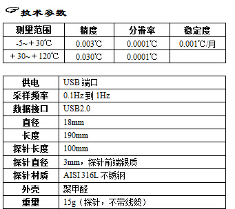 該溫度計具有非常低的響應(yīng)時間,探針前端為銀質(zhì),自熱效應(yīng)可忽略。通過USB端口直接供電。